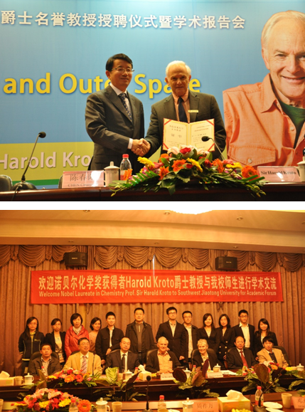 Nobel Laureate Harold Kroto was appointed as SWJTU Honorary Professor and delivered an academic speech on 1th October 2012. |