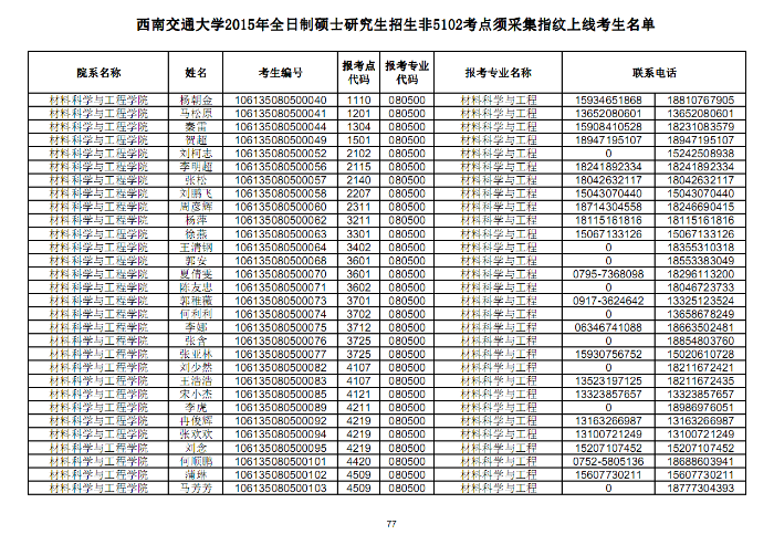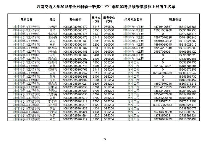 包子漫画 2015年全日制硕士研究生招生非5102考点须采集指纹上线考生名单