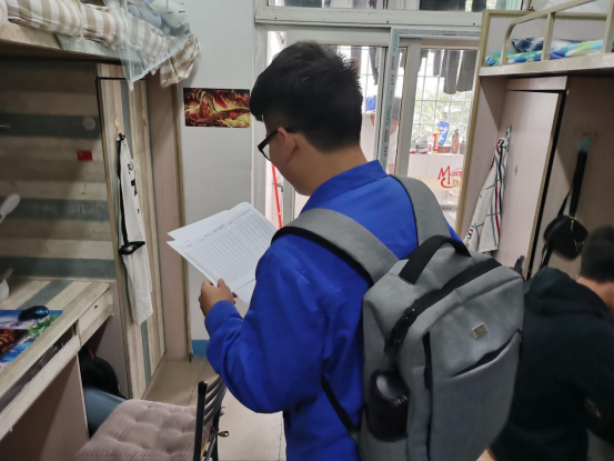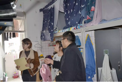 生活权益部成员及辅导员老师走访寝室