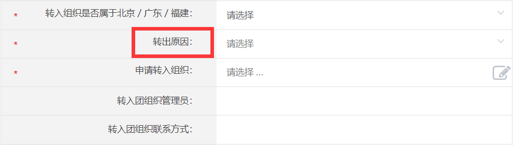 5. 转往特殊单位团组织:因参核、入伍等涉密情况,无需选择转入组织,备注需说明情况,业务提交后由省级团委管理员负责审批。联系对方团支部,视个人情况而定。