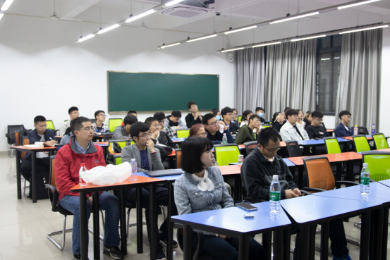 最后,由李中教授上台为大家介绍纳米功能材料与传感系统实验室。李教授在介绍了实验室的一些基本情况之后,指出了实验室目前的研究方向——气体传感和电化学检测。李教授告诉同学们,说到气体传感,要想让传感性能更优异,就要研究更强大的气体传感器。所以实验室就是在努力研发性能更优良的气体传感器。