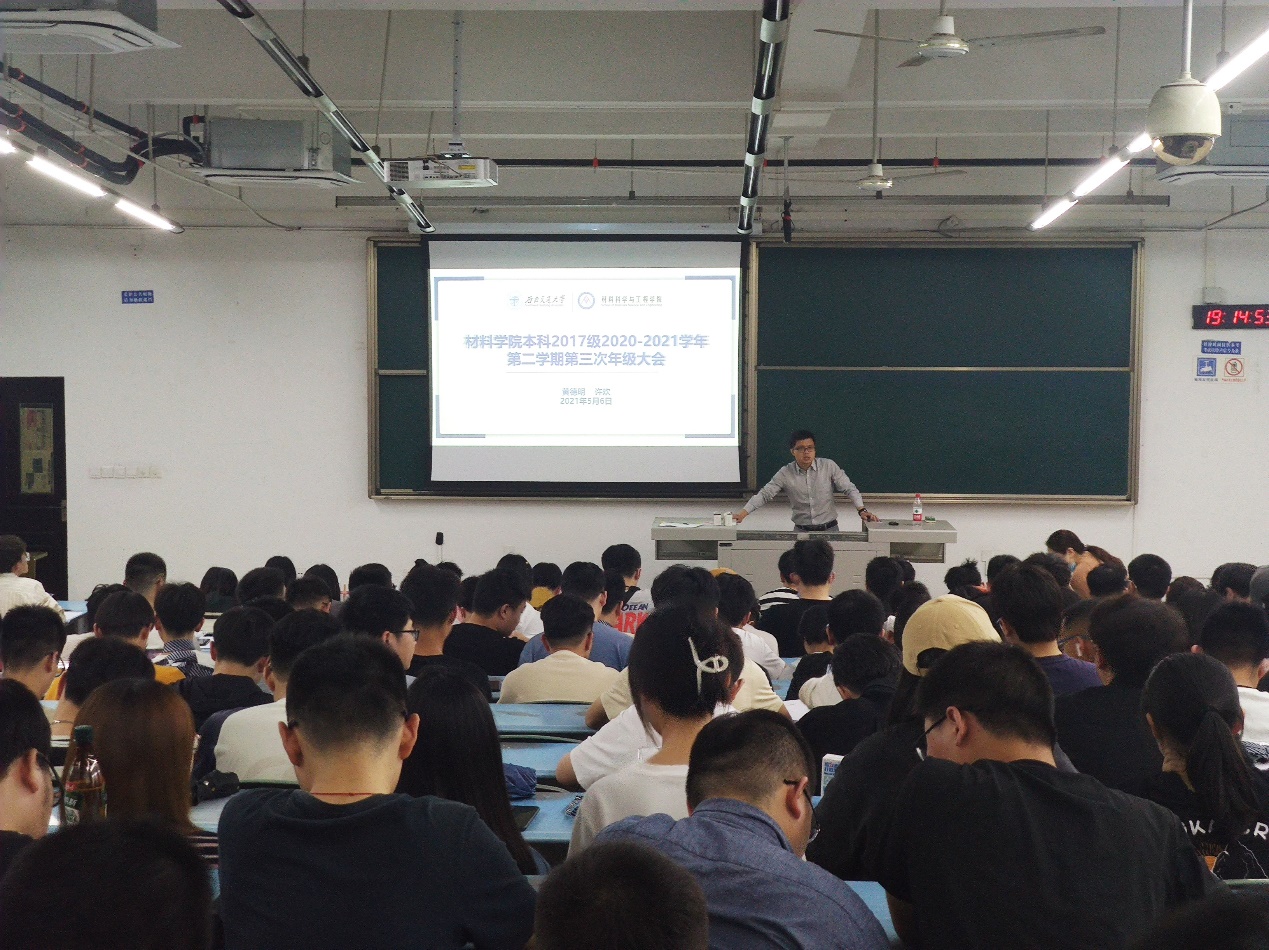 本科2017级在犀浦校区X2218召开了2020-2021学年第二学期第三次年级大会,2017级全体同学参会,2017级辅导员黄德明、许欢出席并主持了会议。