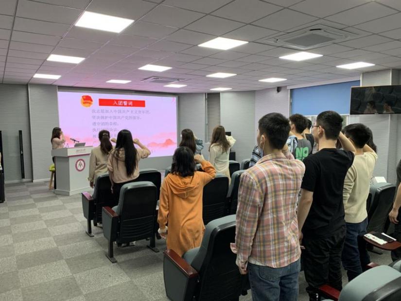 团委副书记、“青年讲师团”严翼飞老师宣布2021年度“青马工程”暨“先锋计划”学生干部培训正式启动,并带领团支书及研究生会成员重温入团誓词。