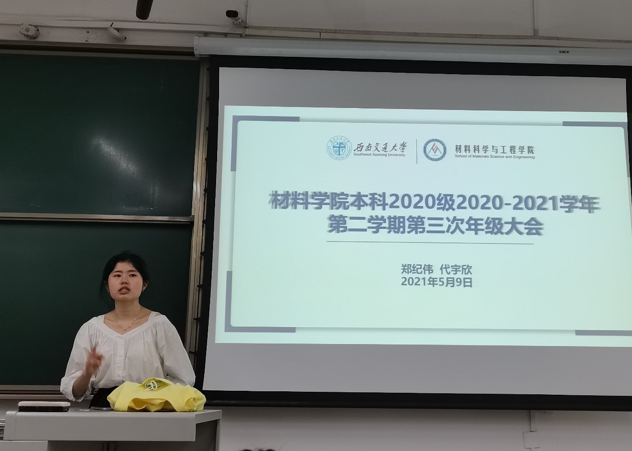 本科2020级于犀浦X2316、X2317召开了2020-2021学年第二学期第三次年级大会,辅导员郑纪伟、代宇欣以及2020级全体同学参与了本次年级大会。本次年级大会主要从宿舍安全、防电信网络诈骗、四六级考试动员、党史学习及疫苗接种注意事项展开。