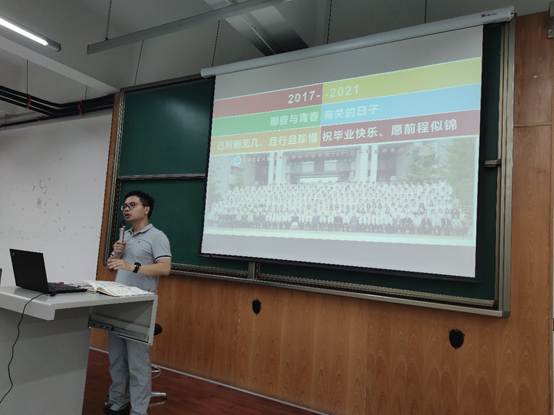 会议第一项,黄德明老师首先就安全问题进行了强调,包括涉及人身安全和财产安全的宿舍用电、防火防盗、电信诈骗、疫情防控、出行及聚会安全等问题,从各方面告诫同学们提高安全意识;之后,黄德明老师对毕业典礼、离校事项及返校考的相关细则进行了说明,对具体要求和相关规定做了强调,提醒同学们谨记并按要求执行。
