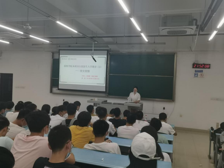 2021级辅导员许欢老师主持,辅导员董海霞老师和全体新生参与。本次活动邀请了我校著名校史专家梁锦唐老师主讲,旨在让新生们了解交大的百年历史,感受交大百年文化背后的底蕴。