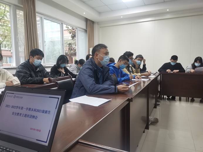 本科2021级在X2128召开安全教育主题班团例会。本次会议由2021级辅导员许欢主持,学院党委副书记章春军、2021级辅导员董海霞和各班班长、团支书参加会议。本次班团例会主要从网络诈骗安全教育、疫情防控、宿舍和信息安全、新生学籍核对、学风建设五个方面展开,重视班团干部能力培养和素质提升。