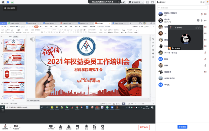 研究生会组织开展,研究生会执行主席胡庆丹主持进行、学院2021级各权益委员以及研究生会成员参加。