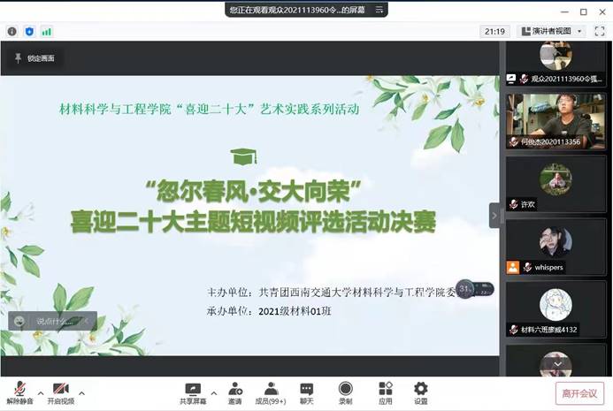 团委主办,材料类2021-01班承办的 “忽尔春风·交大向荣——喜迎党代会·献礼二十大”主题短视频评选活动决赛如期举办。出席本次活动的评委嘉宾有:包子漫画