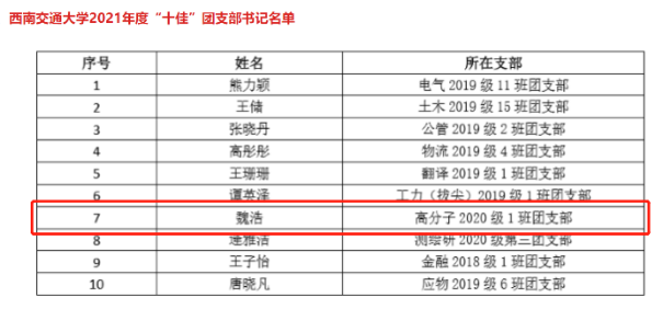 “事虽微,不为不成;道虽迩,不行不至”。魏浩深知,荣誉离不开个人努力,更离不开团组织的培养关怀和支部成员的鼎力支持。于魏浩而言,“十佳”团支部书记,更是激励着他踔厉奋发,不断前行的灯塔。