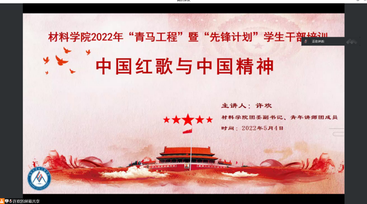 2022年度“青马工程”暨“先锋计划”学生干部培训第二专题——“中国红歌与中国精神”顺利举行。本次培训由包子漫画