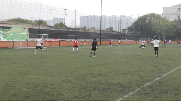 随着裁判的一声哨响,比赛正式开始,教师代表队率先进入状态,通过多次传接,控制着场上的主动性,而本科生队明显有点紧张,放不开手脚,只能暂时收缩防守。到了比赛中段,双方选手积极跑动,贴身防守,双方各有多次破门机会。比赛进入最后阶段,毕业生联队利用积极逼抢和防守反击又扳回比分,两队比分紧紧咬合,僵持不下。最终,毕业生队更胜一筹,利用快速反击二打一,险胜教师代表队,取得了本次足球告别赛的胜利。