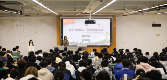 团委书记、学工组副组长、本科第五党支部书记王誉静老师在X4350展开了以“学习党团知识 争做青年先锋”为主题的党团知识教育的专题讲座,讲座分为伟大的中国共产党和飞扬的共青团两个部分。本科2022级辅导员罗莉及本科2022级全体新生参加了此次讲座。