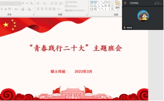 2020级研究生各班虽然以不同形式、不同侧重点开展了“青春践行二十大 砥砺新征程”主题班会,但皆以“入耳入心”方式将大家的思想统一到学习践行党的二十大精神上,引领大家坚定不移地听党话、跟党走,以坚定的理想信念、担当有为的实际行动、苦干实干的奋斗不息为党和国家提供助力。
