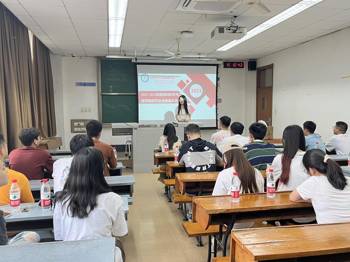 研究生会干部换届大会在九里校区逸夫馆J4421顺利召开。材料研究生会指导老师廖妙威及研会全体成员参会。会议由研会主席王舒一主持。