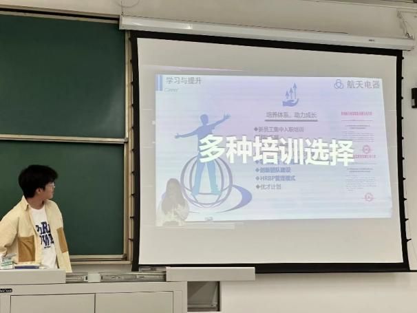 首先,郑文琼向大家展示了目前大学生的毕业去向。通过图表数据的分析,深入浅出地使大家了解了毕业后的多种选择,其中,一大部分同学毕业后选择了就业。讲解后,各位同学开始分享自己在招聘会的所见所闻。各位同学选择分享的招聘单位从国内到国外,从大到小,多种多样,分别围绕公司的概况、招聘专业要求、工资和福利待遇等等逐一为大家讲解。