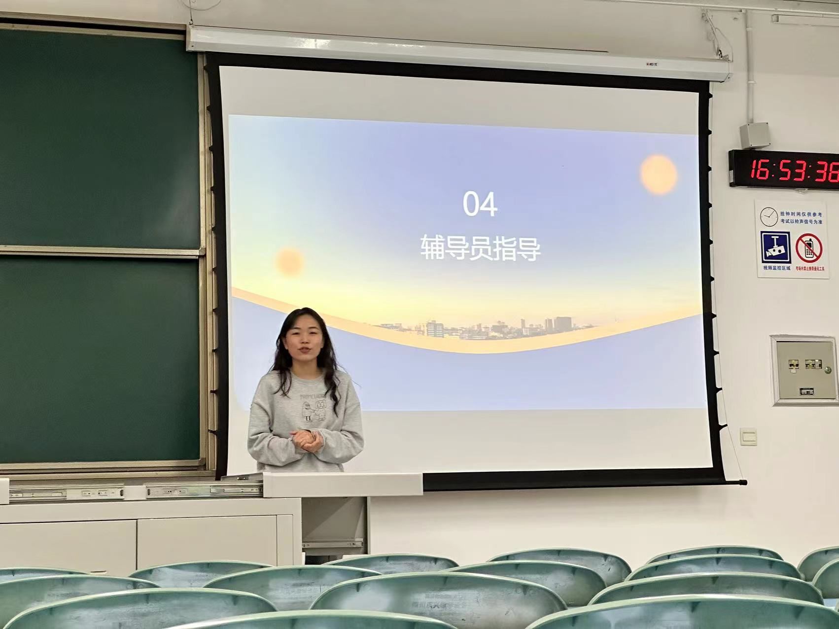 同学们介绍完之后,熊俊老师和张若男老师给同学们分享了关于就业的看法。熊俊老师从专业发展和未来就业前景方面给同学们做出了指导,辅导员张若男老师鼓励同学们重视生涯规划,用发展的眼光看待就业形势,尽早明确目标。