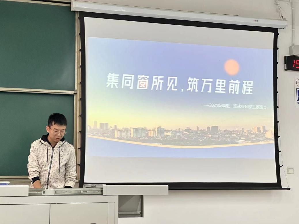 2023年10月13日,为帮助同学们了解就业形势,适应就业环境,顺利拿到自己心仪的offer,成型一班开展了“集同窗所见,筑万里前程”人人讲就业主题班会。班会特别邀请班导师熊俊和辅导员张若男参加,同学们积极分享了深入招聘会现场的体验与感受。本次班会由班长郑文琼主持。
