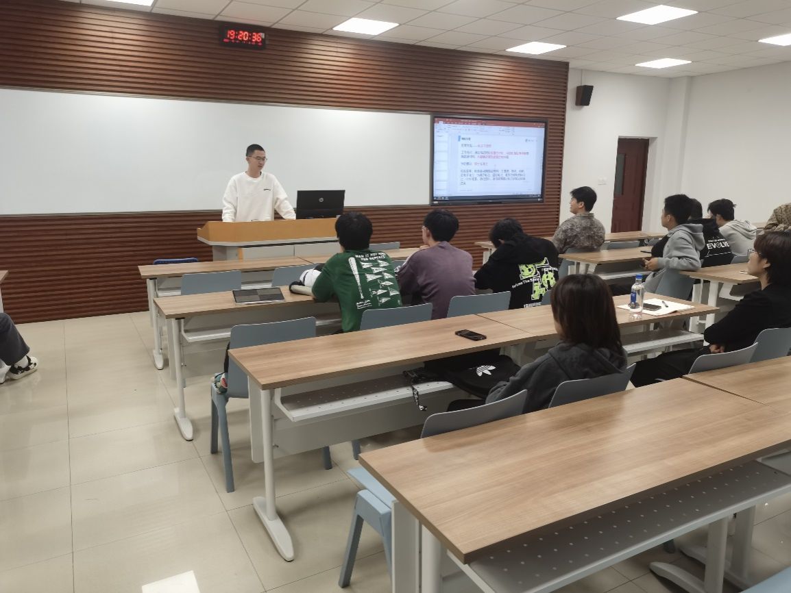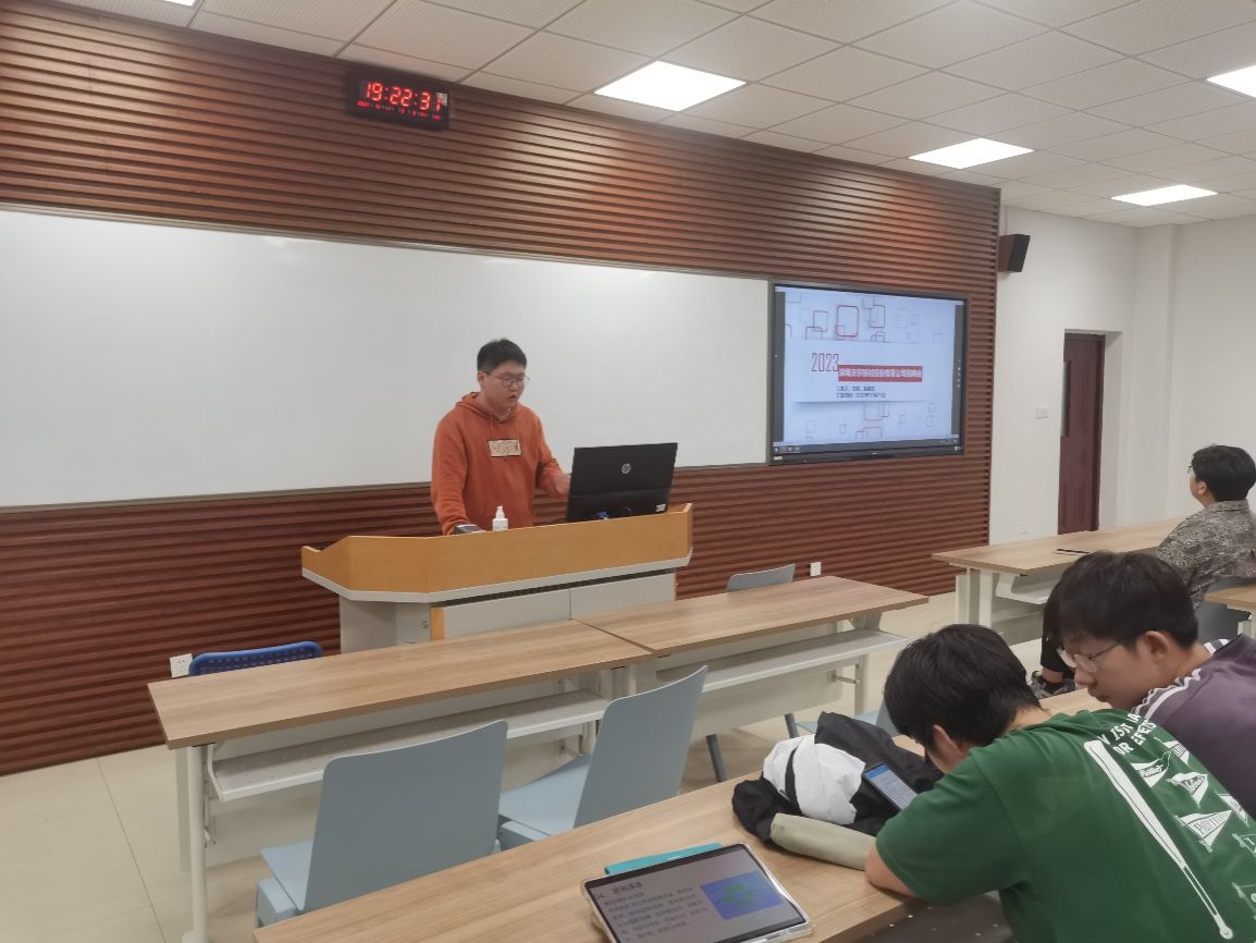 会议第一项内容为学生交流会,两个班二十多名学生分成十余组,由小组代表依次上台介绍他们所了解的企业并分享此次活动的感受,其中包括企业概括、招聘岗位、薪资待遇、发展潜力等。大家了解的类型主要集中国企、少量民企和外企,本科生的薪资集中在年薪10-12W/年,基本上都可以解决住宿、用餐、新员工培养等问题。
