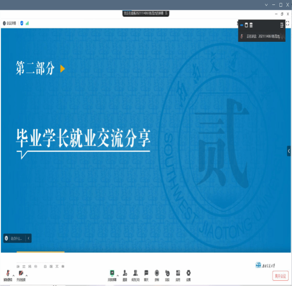为帮助同学们树立积极的就业观,及早了解就业市场和就业单位,进一步细化生涯规划、明确成长目标,遵循“党建带动就业,就业提振学风”的工作理念。2021级成型三班积极响应学院号召,于2023年10月18日在线上召开了“集同窗所见,筑万里前程”就业引导主题班会。本次班会特别邀请到班导师刘拥军和李达两位老师以及刘赞和罗玉林两位优秀学长参加。会议由班长陈茂杰主持,成型三班全体成员参加。