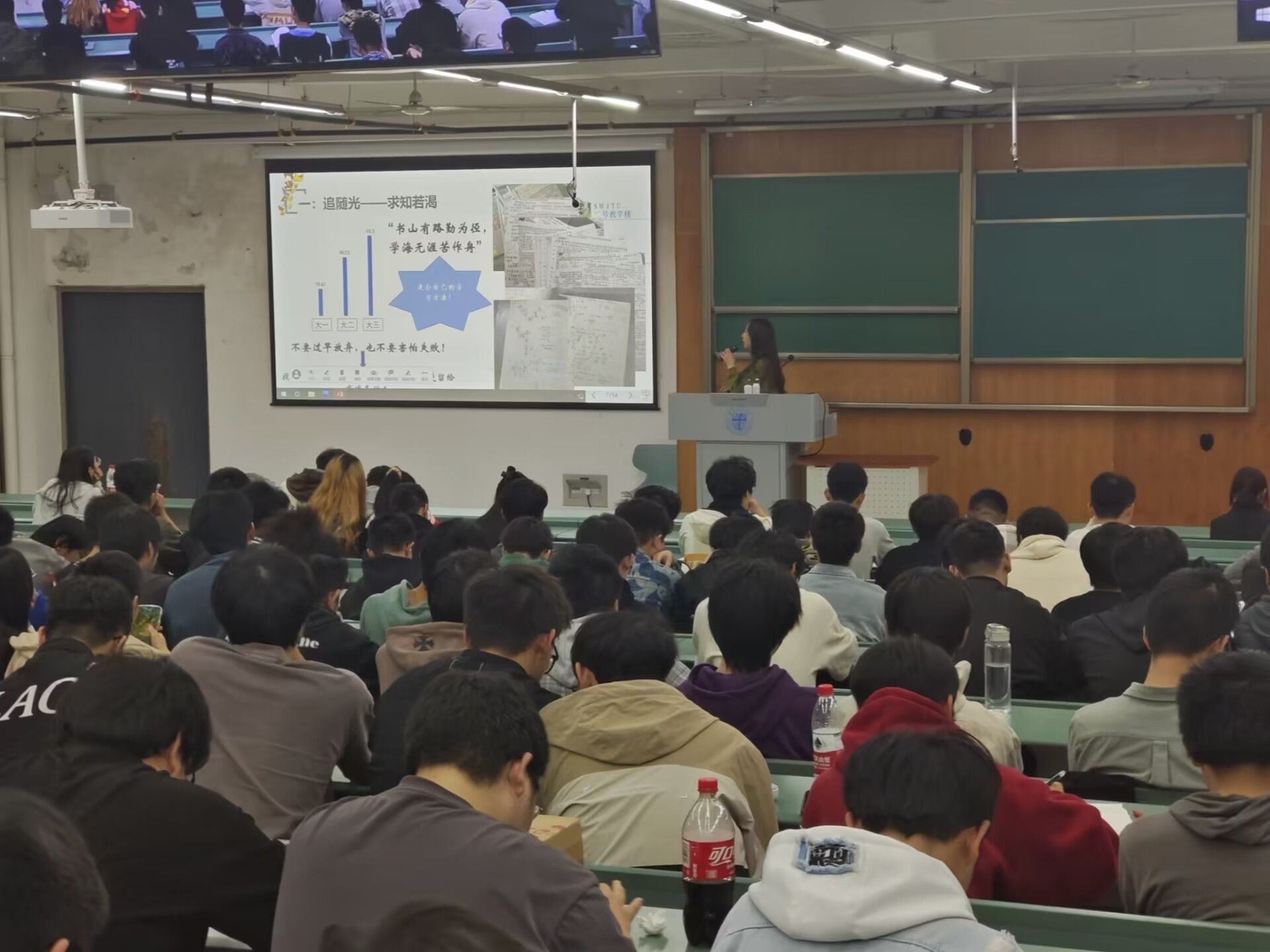 分管本科生教育教学工作的蒋小松老师为同学们做学业指导,并邀请到学院青年讲师团成员汪瑀琦、向思林、朱可欣分别进行学习经验分享。本次大会由学院团委书记、2022级辅导员王誉静老师主持,辅导员张琬祺老师及2022级全体本科生参与。