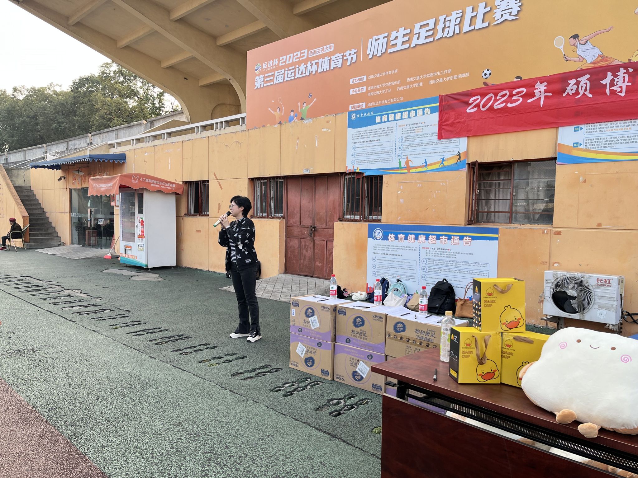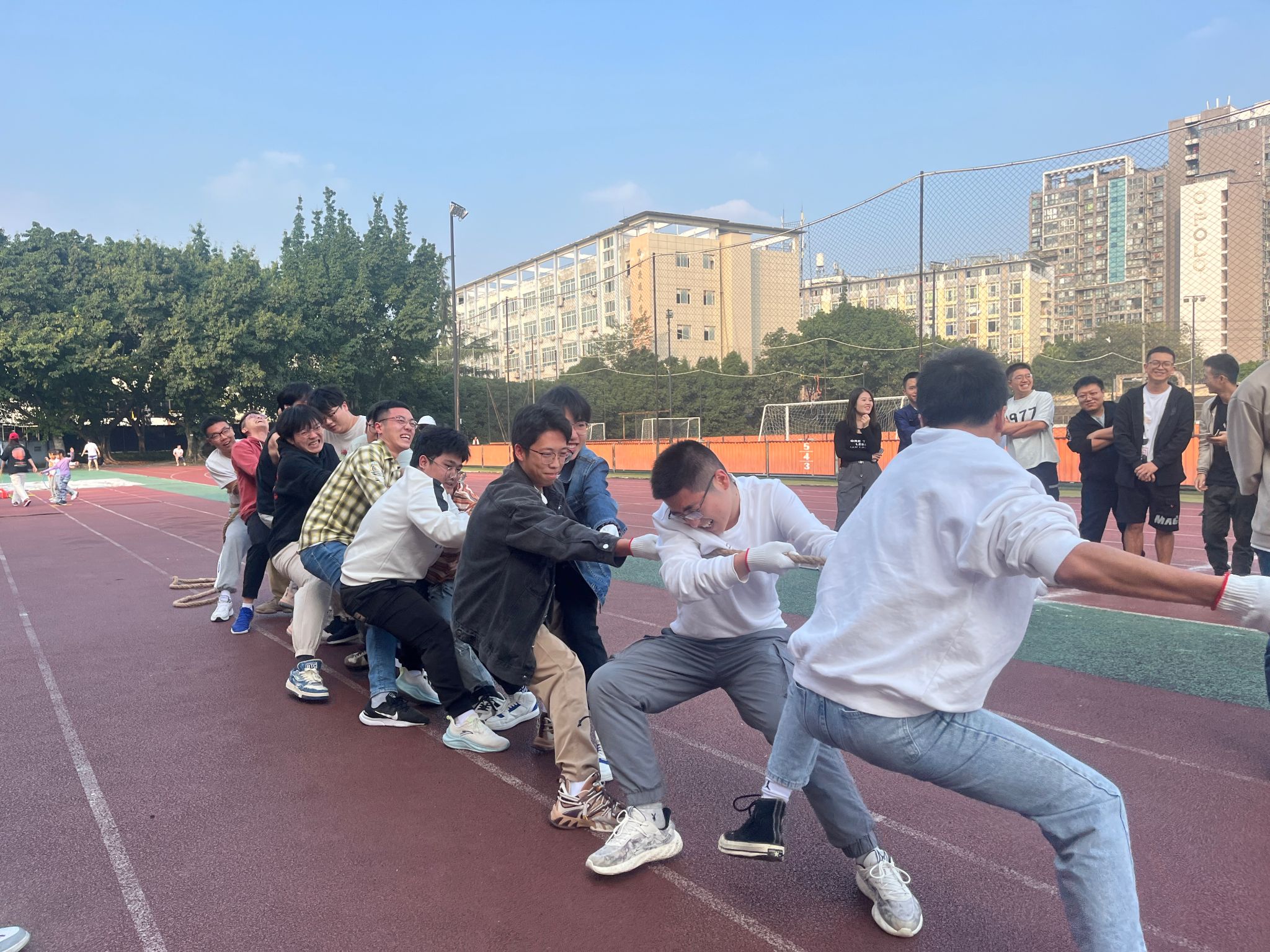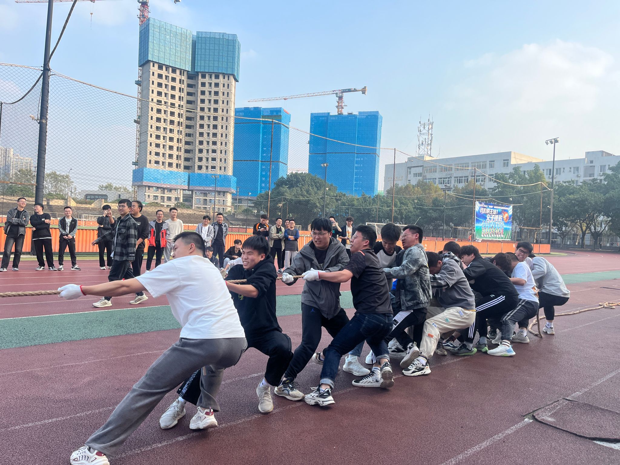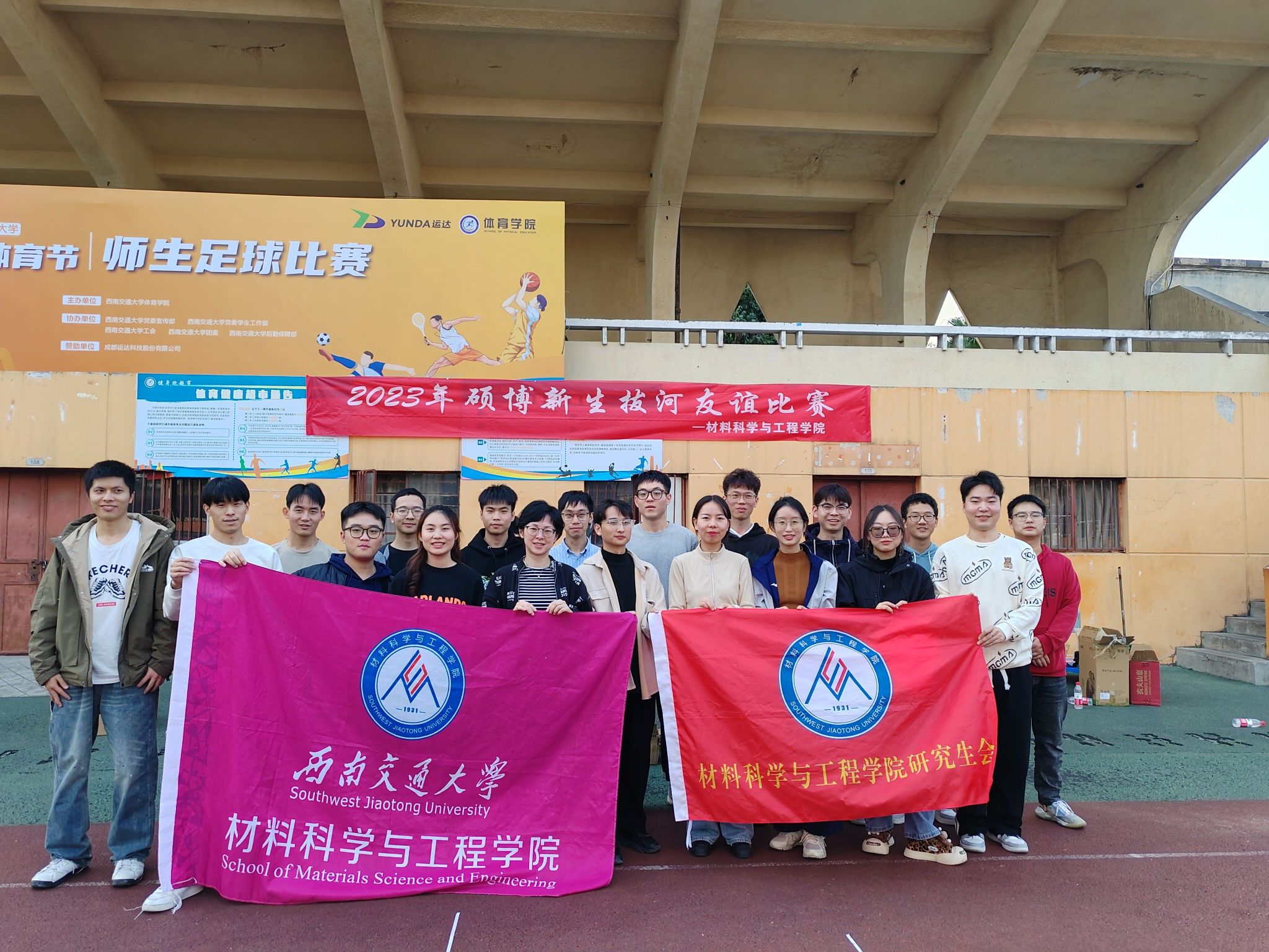 于2023年11月9日下午在田径场举办2023年硕博新生拔河友谊比赛。