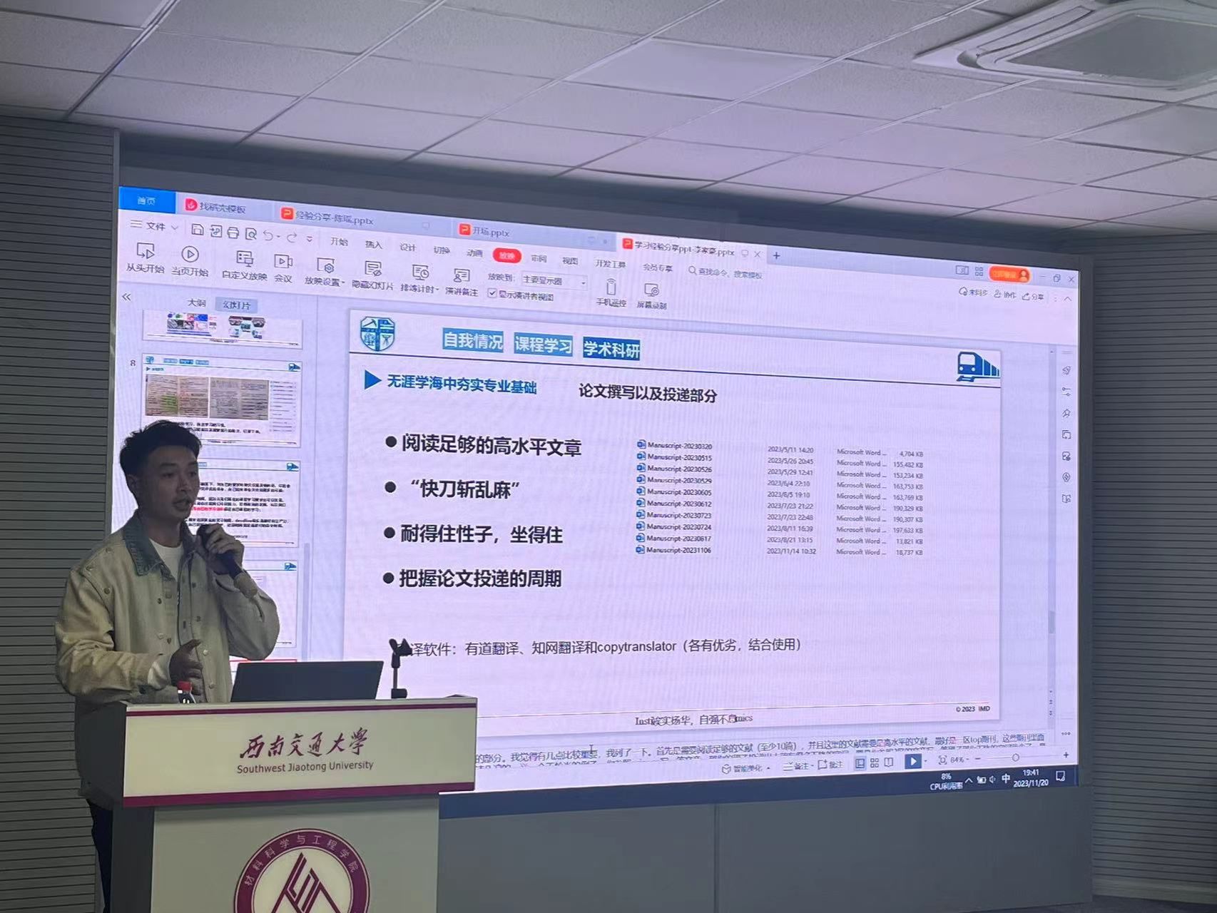 朋辈引领,榜样相随。本次讲座邀优秀朋辈与研究生同学面对面,通过分享学术经历与感悟、讲授科研技能,更好地满足研究生同学的学术需求,有助于研究生新生获取实用性的科研经验,更好地适应新的学习模式,探究学术研究的乐趣和挑战。鼓励同学们向先进模范学习,树立远大目标,养成良好的学习和生活习惯,奋发向上,全面发展,争做新时代“四有”青年,在实现民族复兴的赛道上奋勇争先。