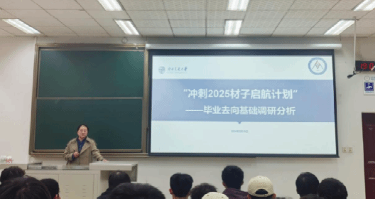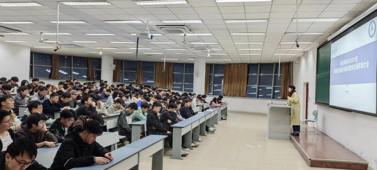 本科2021级于3月19日开展“冲刺2025材子启航计划”(四)——毕业去向基础调研分析,辅导员许欢、张若男及2021级全体本科生参加。