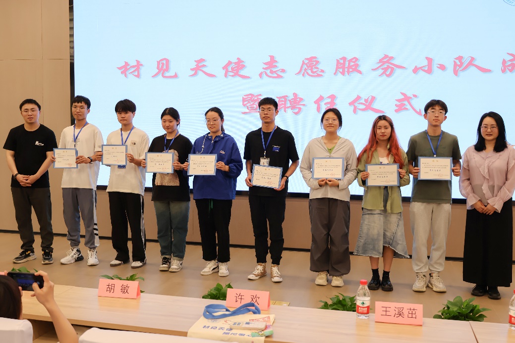 为了推进材料青协和成都天使心的深度合作,材料青协正式成立“材见天使志愿服务小队”,并现场为代理队长和志愿者代表颁发聘书,旨在鼓励更多志愿者投身公益事业,为成都天使心培养一支有爱心、有担当的专业化志愿者队伍。