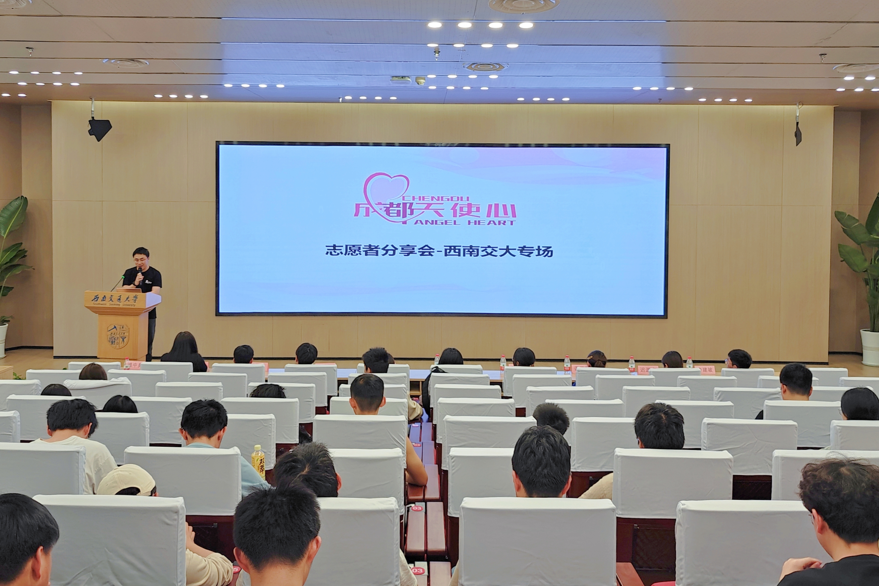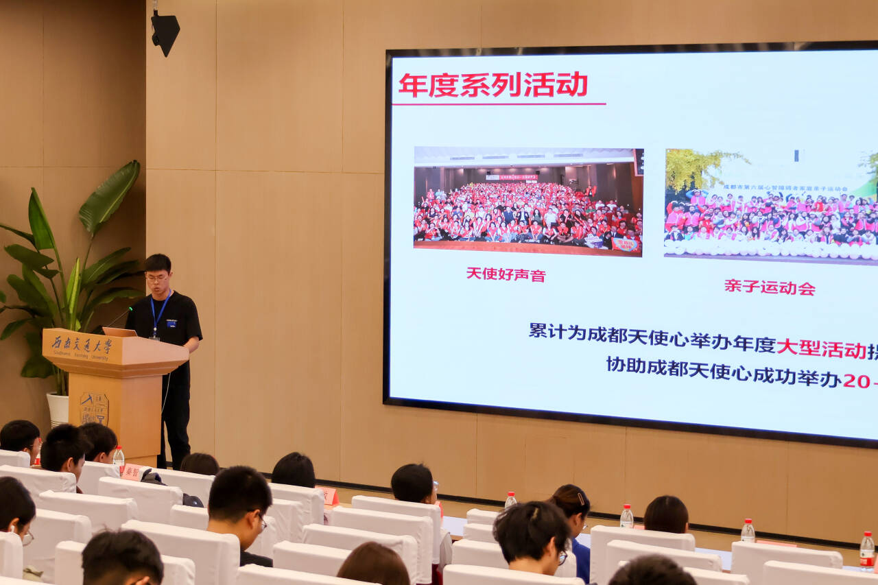 赖中勇老师以详实的数据,以及“爱奇儿”与志愿者们的活动影视资料,生动地介绍了成都天使心的服务理念、工作内容和服务项目,让现场师生了解了什么是“爱奇儿”、什么是“天使心”以及天使心活动的意义,呼吁更多同学对爱奇儿家庭多一份关爱与包容,用爱传播爱、用心连接心。