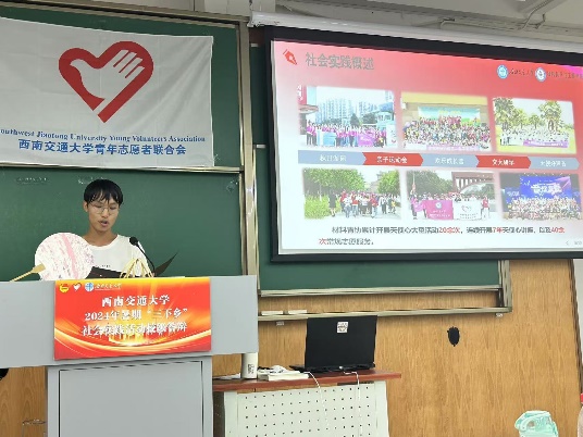 答辩会伊始,各实践队伍依次登台,借助PPT和视频等多媒体手段,将暑期社会实践的点点滴滴生动展现。从党史学习的深刻感悟,到乡村振兴的实地探索,再到爱国教育的深情传递,每一个项目都蕴含着同学们对社会实践的深度思考和实践成果。这些丰富多彩的实践内容,不仅展现了当代大学生勇于担当、敢于实践的精神风貌,更彰显了他们服务社会、报效国家的坚定信念。