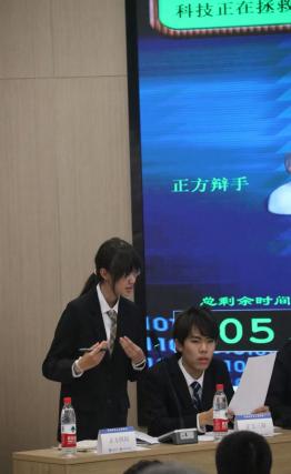 正方材料一班辩论队,他们坚定的认为,科技正在拯救艺术,他们分别从三个角度进行论证:首先是科技为艺术的传播提供了新渠道,其次是科技为艺术创作带来了新途径,最后是科技对艺术品的修复和保存创造了新方法。