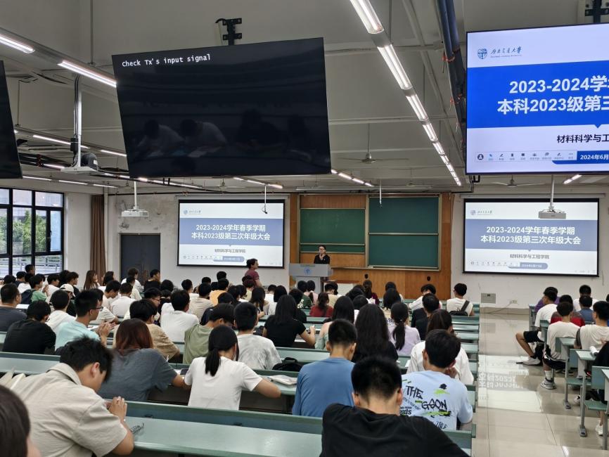 本科2023级于X4350召开本学期第3次年级大会。本次年级大会邀请到材料青协指导老师许欢老师、材料青协会长团成员朱宁顺同学参与,本科2023级辅导员熊心怡及全年级同学参会。会议由熊心怡主持。