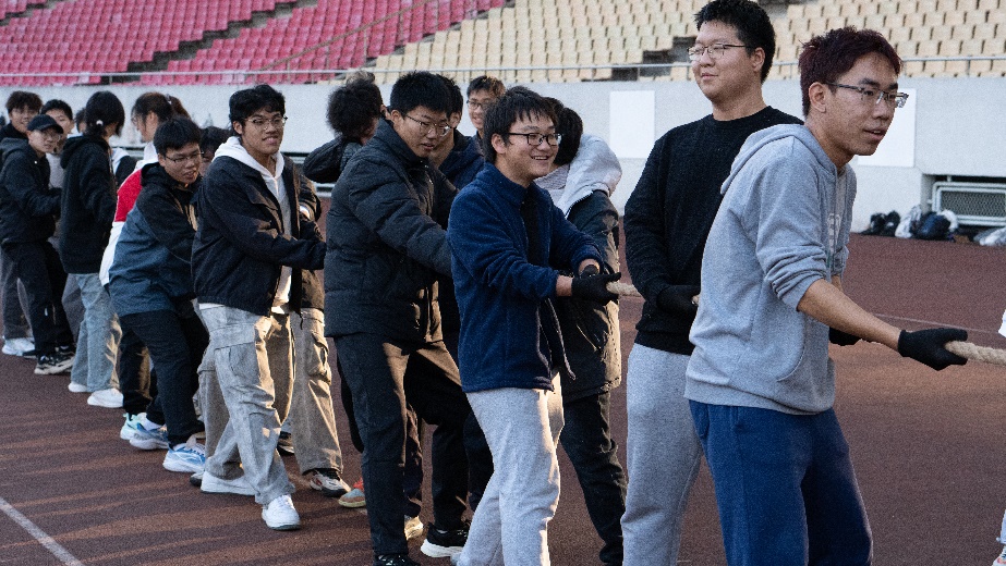 紧接着,备受期待的拔河比赛正式开始。同学们个个摩拳擦掌,蓄势待发。在拔河过程中,每一位同学都竭尽全力,每一个班级都团结一致,为了班级的荣誉而战。一些同学甚至戴上了搞怪的头套,以幽默的方式瓦解对方的士气。操场上的喊叫声此起彼伏,同学们都在为自己的班级加油助威。经过一番激烈的比拼,材料三班凭借出色的团队协作和力量,勇夺桂冠,材料茅班和材料四班分别夺得亚军和季军。赛后,同学们领取了自己拼搏得来的小奖品,并与辅导员和班助合影留念,留下了难忘的瞬间。拔河比赛后,还有许多小游戏,如“手舞足蹈”、投壶等,这些游戏不仅考验了同学们的反应能力和协调性,也让现场充满了欢声笑语。