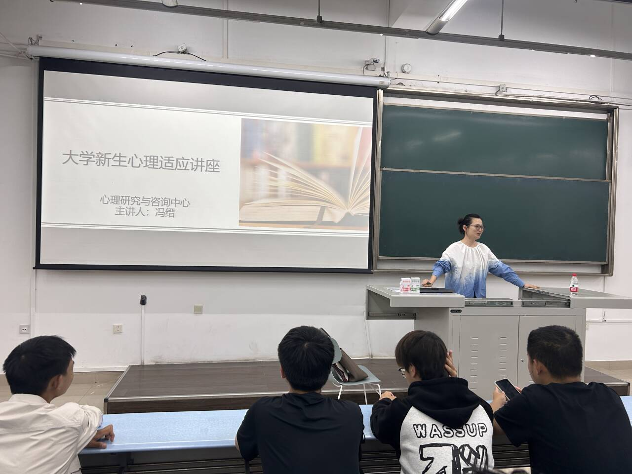 在心理健康教育环节,冯缙围绕新生常见的学业压力、人际适应等问题展开讲解,明确介绍了学校心理咨询服务的具体位置与预约方式。冯缙强调,“遇到困扰别硬扛,主动寻求帮助是对自己负责的表现”,并鼓励同学们践行“助人自助”,既关注自身情绪状态,也主动关怀身边同学,共同营造积极健康的成长氛围。此外,教育还结合大学生未来发展的长远需要,指出心理健康不仅是个人抗挫折能力的基础,更是学会关心他人、传递温暖的重要过程。
