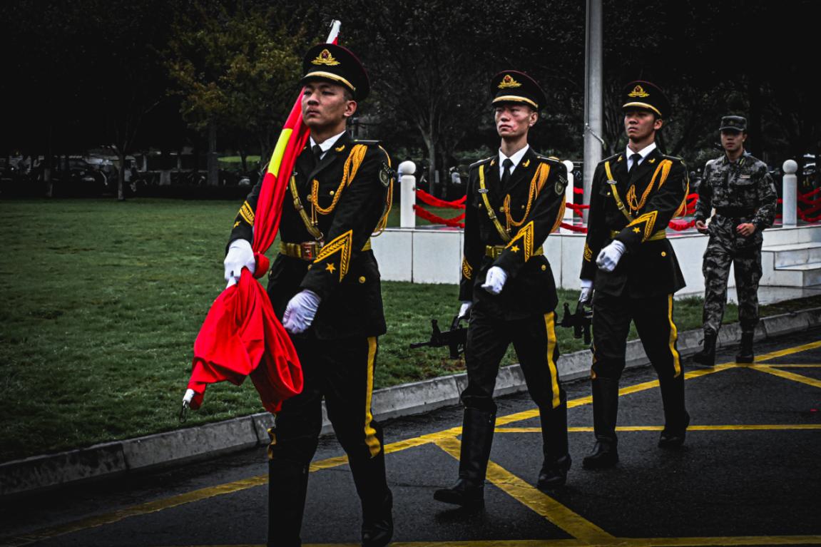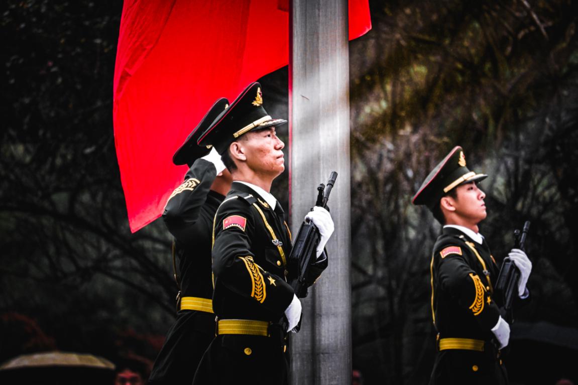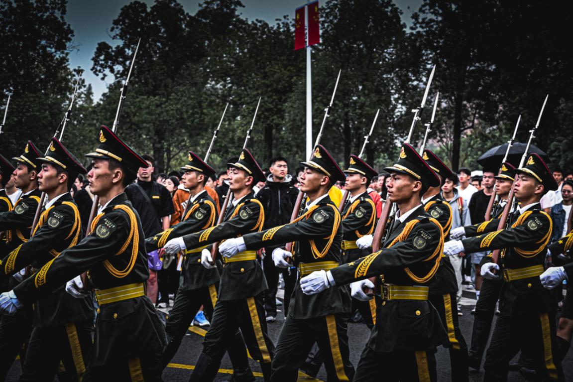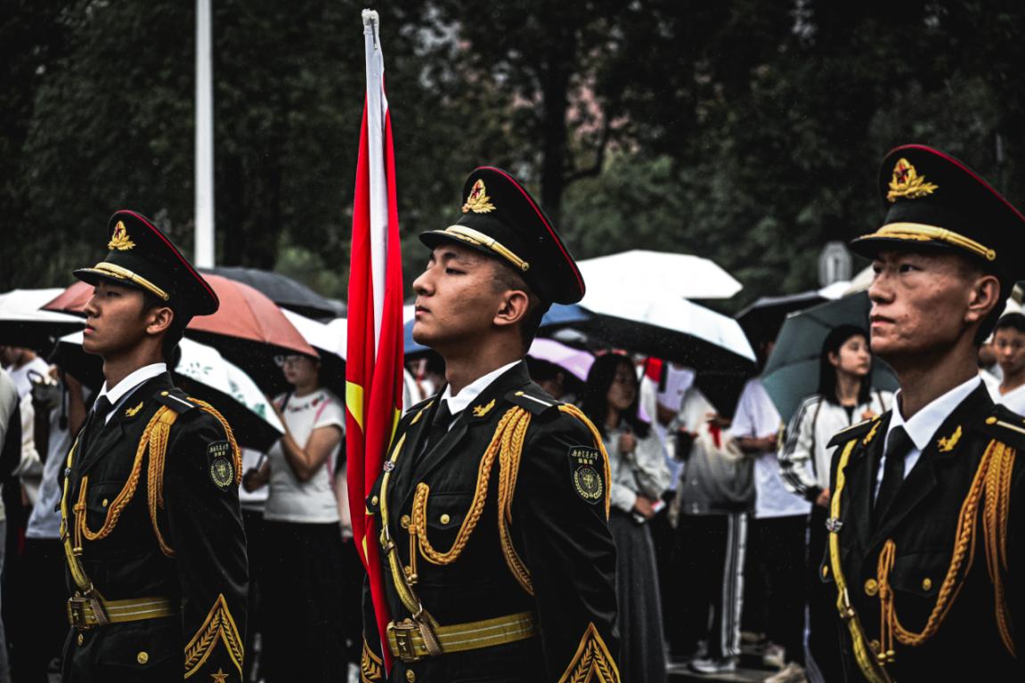 国旗护卫队的系列画面,以“青春挺膺担当,以国旗为媒诠释家国情怀”为核心主题。通过捕捉护卫队成员在升旗仪式中整齐划一的步伐、坚毅挺拔的身姿、对国旗的庄重守护等细节,展现当代青年学子并非只囿于书斋,而是以青春之躯肩负起捍卫国旗尊严、传承爱国精神的责任,将个人青春理想融入国家发展的宏大叙事,生动诠释“挺膺担当”的青春内涵——在仪仗的庄重仪式里,是青年对国家象征的敬畏与践行,是用热血青春为中国的精神底色添彩。