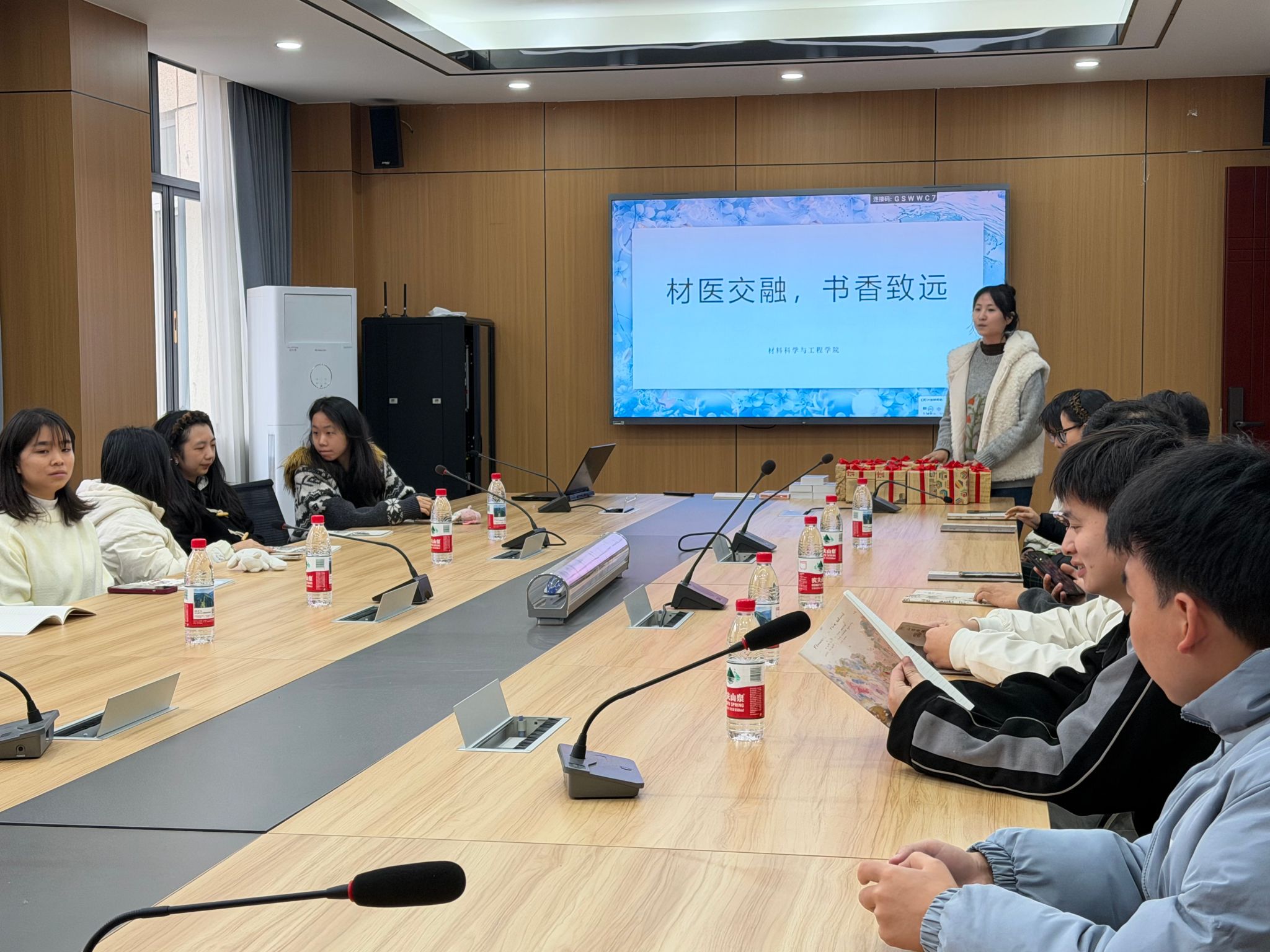在九里校区3号教学楼3322教室举办“材医交融·书香致远”主题读书研讨活动。学院辅导员王誉静、张宝开全程参与指导,包子漫画