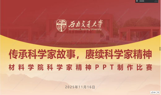 随着知识问答环节的热烈互动,本次“讲好科学家故事,赓续科学家精神”PPT制作比赛决赛圆满落幕。活动以青年视角为纽带,串联起院士的赤子情怀与当代青年的使命担当,激励着广大青年学子以科学家为榜样,将爱国情、强国志、报国行融入人生追求,在科研报国的道路上勇毅前行,为国家科技事业的发展注入源源不断的青春动能。