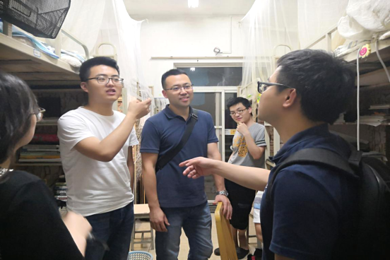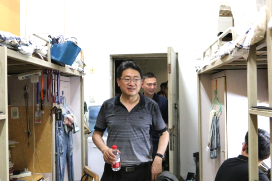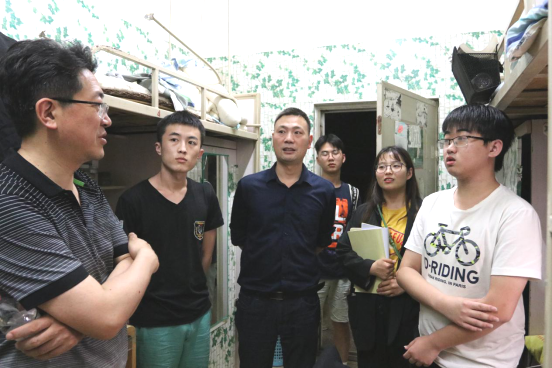 院长朱旻昊、党委书记贺剑、党委副书记章春军、学工组副组长黄德明、其他辅导员王誉静、周媛媛、王莹、郑纪伟老师等一行来到南区宿舍楼给包子漫画