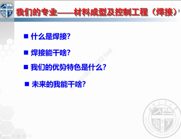 吕老师通过以上几个问题的解答,向同学们介绍了材料成型及控制专业的专特色。吕老师表示,焊接这一词大家其实非常熟悉,但是进入大学,同学们会发现焊接的世界非常广大。焊接是材料的“裁缝”,不光是金属,陶瓷、高分子、复合材料,甚至是人体软组织,几乎所有材料都可以“焊接”。在简单介绍完“什么是焊接?”后,吕老师又从未来规划、就业等与现实相关的,并且是同学们最为关心的方面,为同学们做了解答,解决了很多同学们所担心的问题,让他们对“焊接”这一技术有了更深一步的认识。