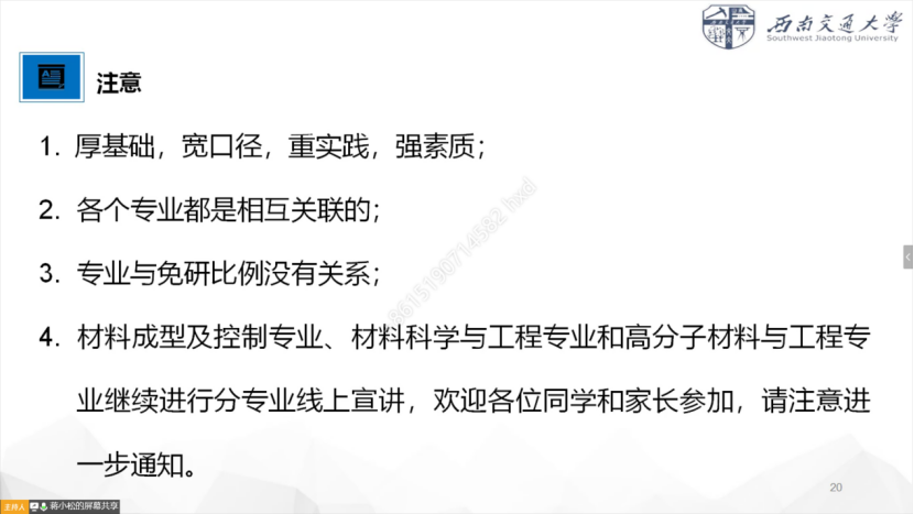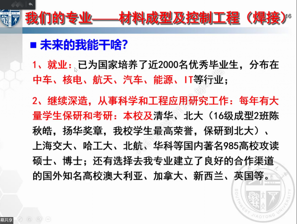 的专业方向和学习道路。材料成型及控制专业、材料科学与工程专业和高分子材料与工程专业后续将继续进行分专业线上宣讲,后续流程将线上通知。