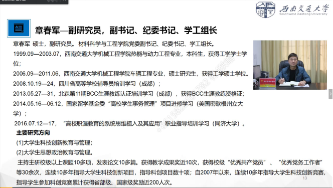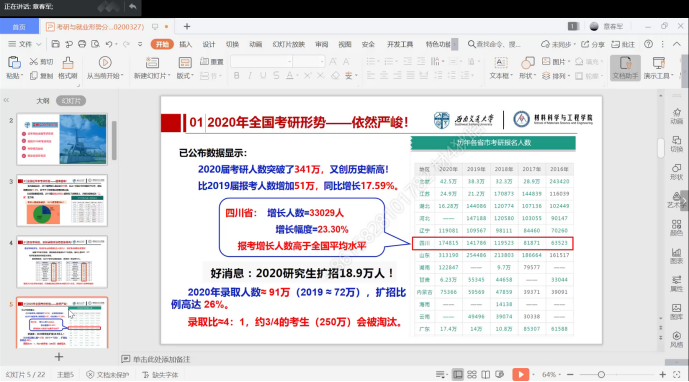 在三位教授结束他们的专业介绍后,学院章春军副书记就学生升学与就业形势给大家做了分析。章春军副书记灵活对比,向同学们揭示了严酷的考研斗争以及就业形势。相信同学们能够警醒自己,在疫情期间同样不落下功课,向着优秀的自己不断努力!