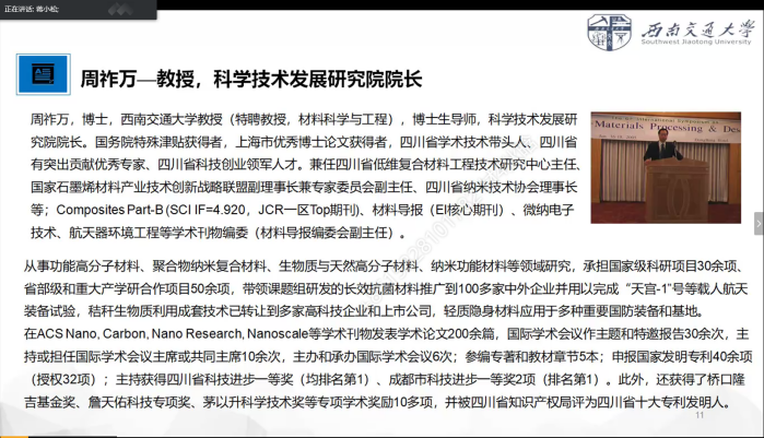 作为一个“年轻”的专业,高分子材料的发展丝毫不逊于成型和金属专业。周祚万教授介绍了高分子专业的发展历程、所有教师在主要研究领域取得的成果以及培养方案的有效实施。高分子专业前程似锦,发展蒸蒸日上,为每一个学子提供良好的学习条件。