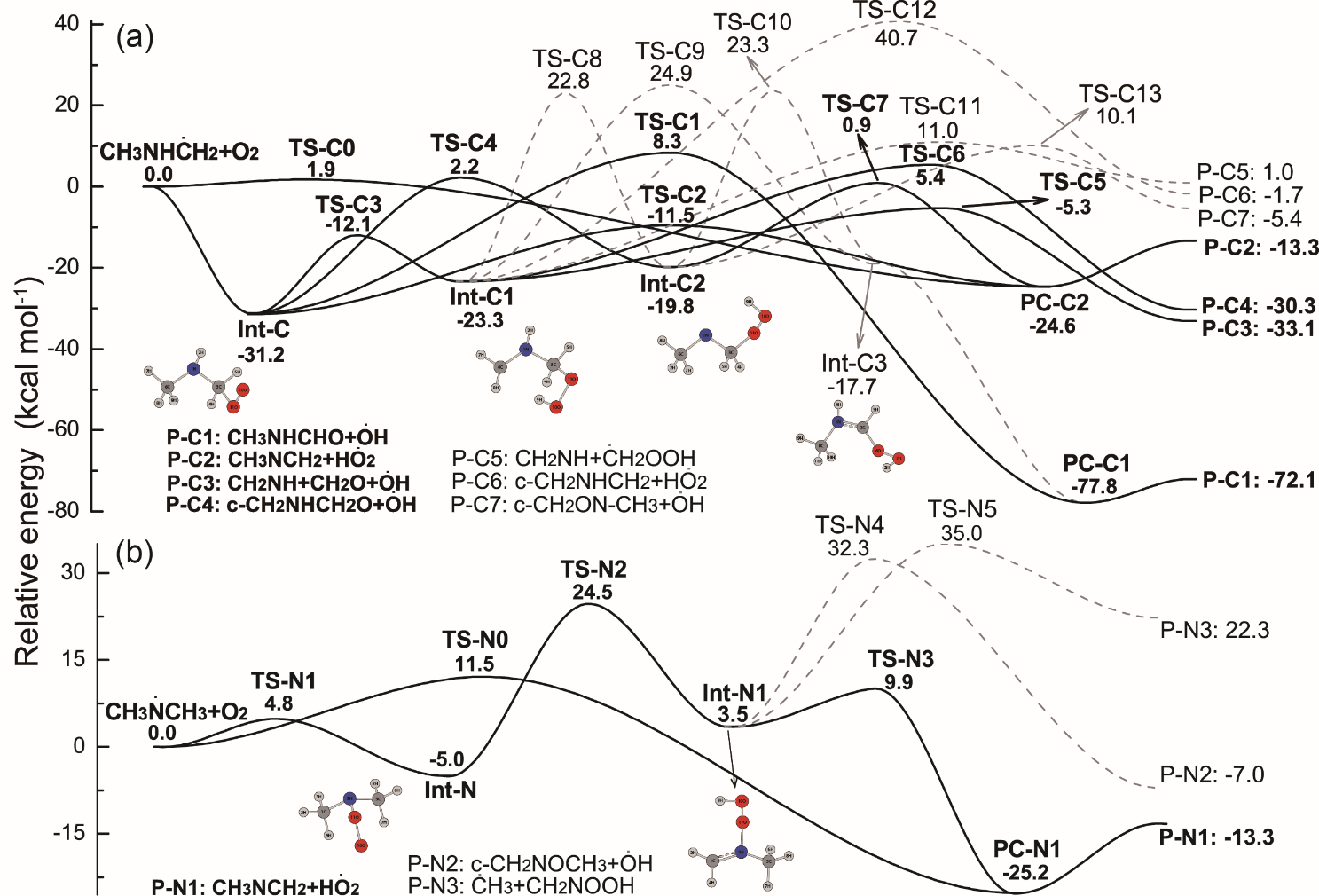 图1二甲胺自由基的低温燃烧反应网络势能面
