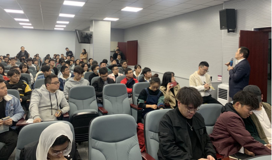 在讲座最后,洪方明学长还与参会者就个人职业发展进行了交流,他指出学生在校期间的学习成绩是个人学习能力的体现,是企业选人的重要依据,同时要多读书、选学相关专业的课程,增长知识面,提高个人素质。