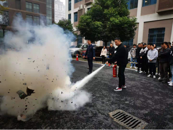 活动第二部分,由吴教官带领同学们进行灭火演练。同学们以六人为一组的形式,在吴教官的讲解下,用干粉灭火器完成对火源的扑灭。在演练过程中,同学们自觉遵守秩序,在保证安全的情况下,实际操作灭火器进行灭火。通过模拟扑灭火灾的过程,同学们对灭火器的使用也更加的熟练。至此,本次消防安全知识讲座与消防演练圆满结束。