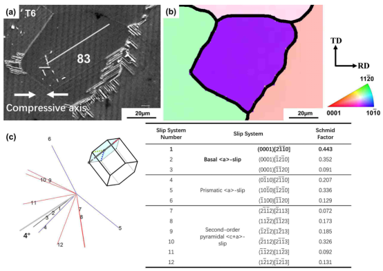 此外,研究发现,相比于其它形状或惯析面的析出相,柱面盘片状析出相(WGZ1152中的主要强化相)具有更好的强化效果。但是近期有TEM结果表明柱面盘片状析出相可以频繁地被基面位错切过,使得其强化效果被限制。另一方面,关于柱面盘片状析出相对基面<a>和二级角锥面<c+a>滑移的相对强化作用目前还存在争议。因此,相关的实验及统计结果十分必要。