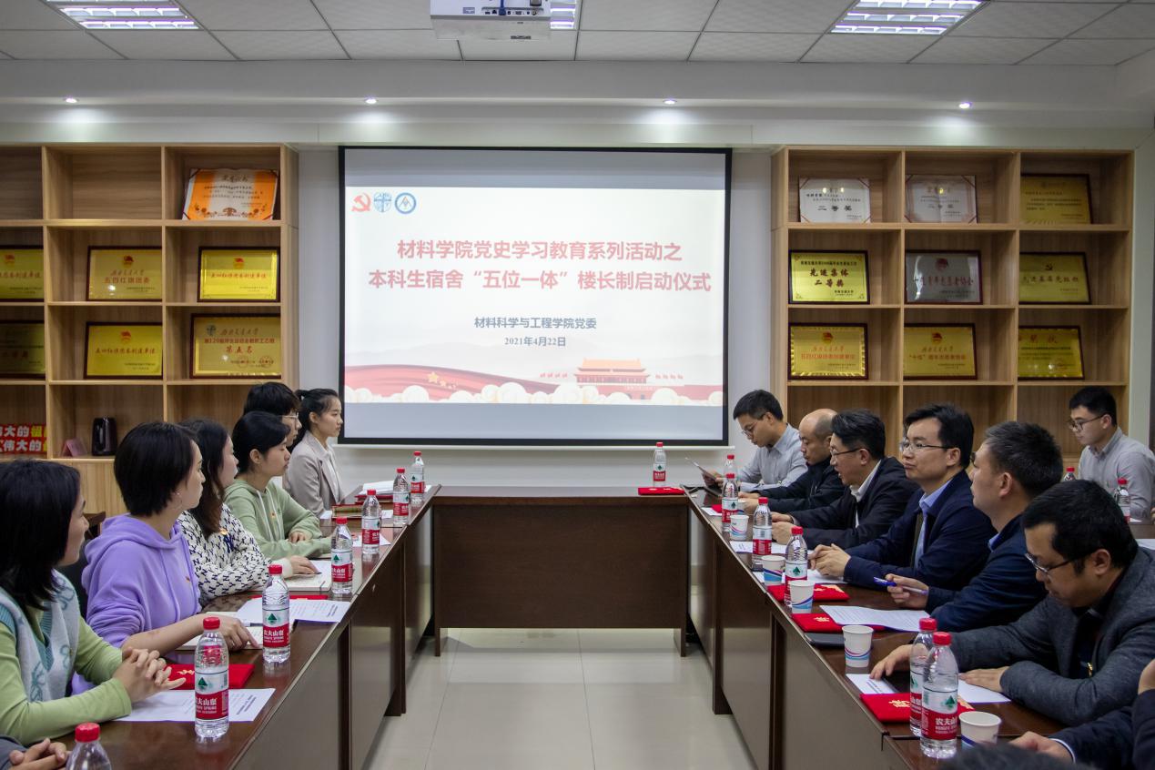 本科生宿舍首批楼长聘任及“五位一体”楼长制工作启动仪式于X2128会议室正式举行。学院院长朱旻昊、党委书记陈勇、党委副书记章春军、副院长李涛、副院长冷永祥、研究生教育工作负责人王勇、本科教学工作负责人蒋小松、工会主席王良辉、材料科学与工程国家级实验教学示范中心常务副主任刘艳以及本科生辅导员、部分学生党员、楼长助理代表等参加启动仪式。学工组副组长黄德明主持启动仪式。