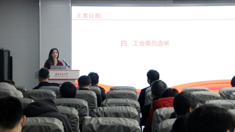 第五届工会委员会作上届工会工作报告。他主要从抓好教代会工作,发挥教代会参与民主管理和监督作用、加强青年教职工工作,努力推进师德师风建设、坚持“送温暖”活动,积极为教职工办实事、推进教职工之家建设,切实加强工会自身建设、提升女教职工整体素质,引导女教职工建功立业、开展群众性体育活动,增强教职工的凝聚力、过去三年的工作经验与不足等七个方面作了汇报,并从“加强宣传思想工作,坚持用习近平新时代中国特色社会主义思想武装工会会员的头脑、不断提高工作水平,努力成为推进民主管理的桥梁和纽带、结合学院的实际情况,努力成为教职工的‘贴心人’”等方面对学院下届工会工作提出了建议。