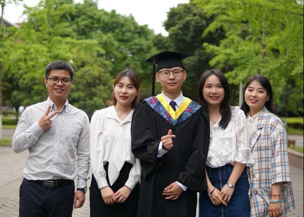 15:00,几位穿着学士服的同学来到X2125办公室,邀请辅导员老师们一起合影留念,定格他们珍贵的毕业时光。自强之星获得者2019级本科生周同学送来了奶茶,专门感谢老师们对她的帮助。
